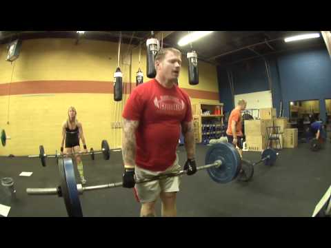 I scaled it to 93#, and didn't go nearly as fast as the two athletes featured in the video :) but if you watch, you'll see me in the background.